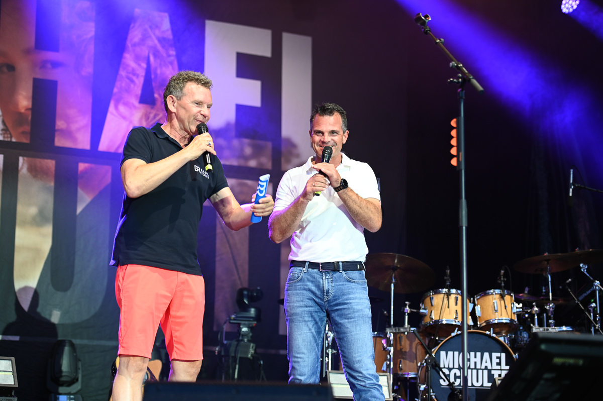 Hunderte Zuschauerinnen säumten die Straßen, um die Radlerinnen der BR-Radltour zu begrüßen. Familien, Jugendliche und Senior*innen – ganz Donauwörth war auf den Beinen. Am Abend füllte sich der Festplatz, wo Michael Schulte mit Stimme und Präsenz begeisterte.
