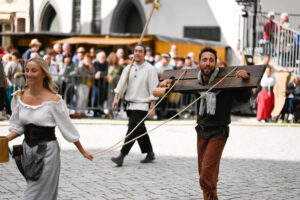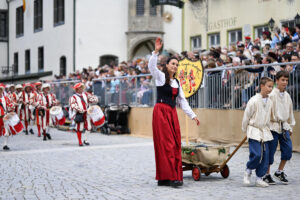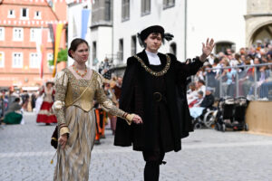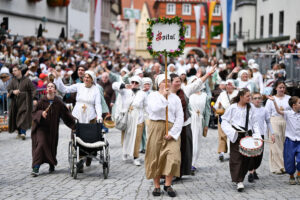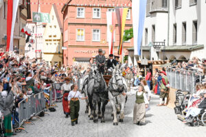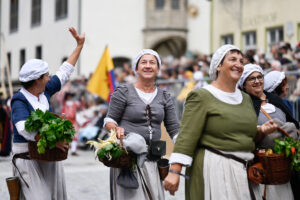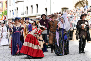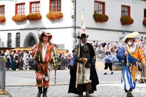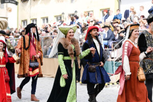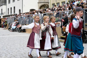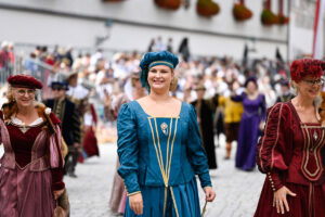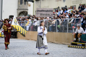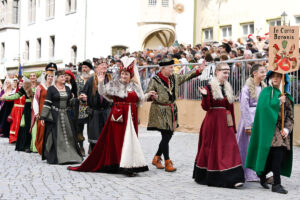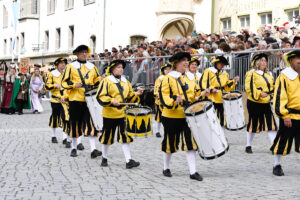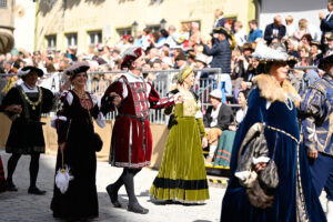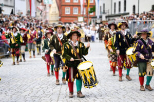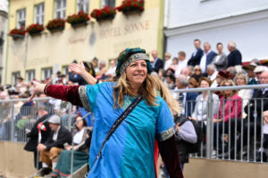 Der große Umzug führte in historischen Kostümen durch die Straßen rund um die Stadtmauer. Spielmannszüge, Fahnenträger, Reitergruppen und bunt geschmückte Wägen sorgten für ein farbenprächtiges Bild. Meine Aufnahmen zeigen nicht nur die offiziellen Formationen, sondern auch die vielen kleinen Gesten: das Staunen der Kinder, das Lachen der Mitwirkenden und die Begeisterung des Publikums.